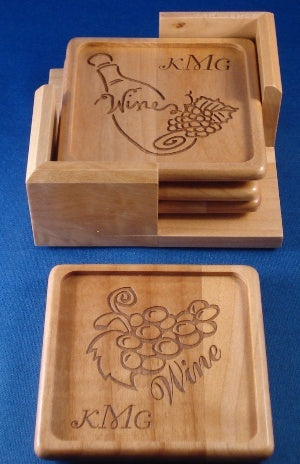 For those wood lovers you know our Maple wood coasters with a caddy make a great gift. These coasters engrave a dark brown which is a nice contrast to show any detailed text, logo or clip art of your choice. Quality construction from Maple wood with a clear finish applied. Each coaster has a recessed area large enough for mugs, glasses and cups.